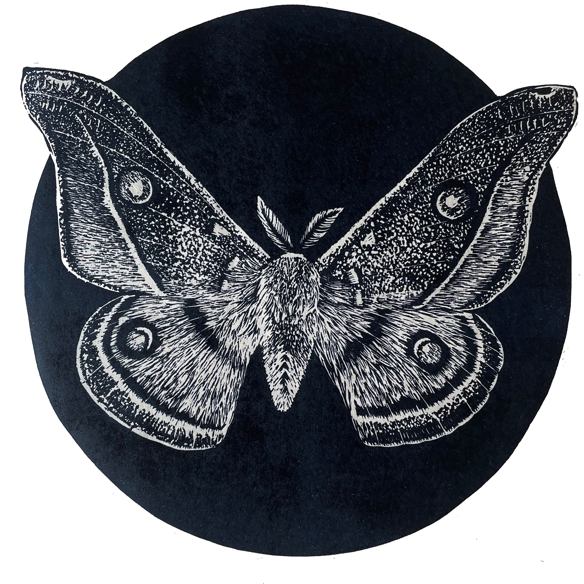 Relief Linocut - hand carved on silk linoleum, then hand printed with prussian blue ink on Japanese paper 46GS
