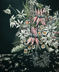 Hand carved on Silk Linoleum, printed on Stonehenge Paper 300gsm and hand painted with watercolour.