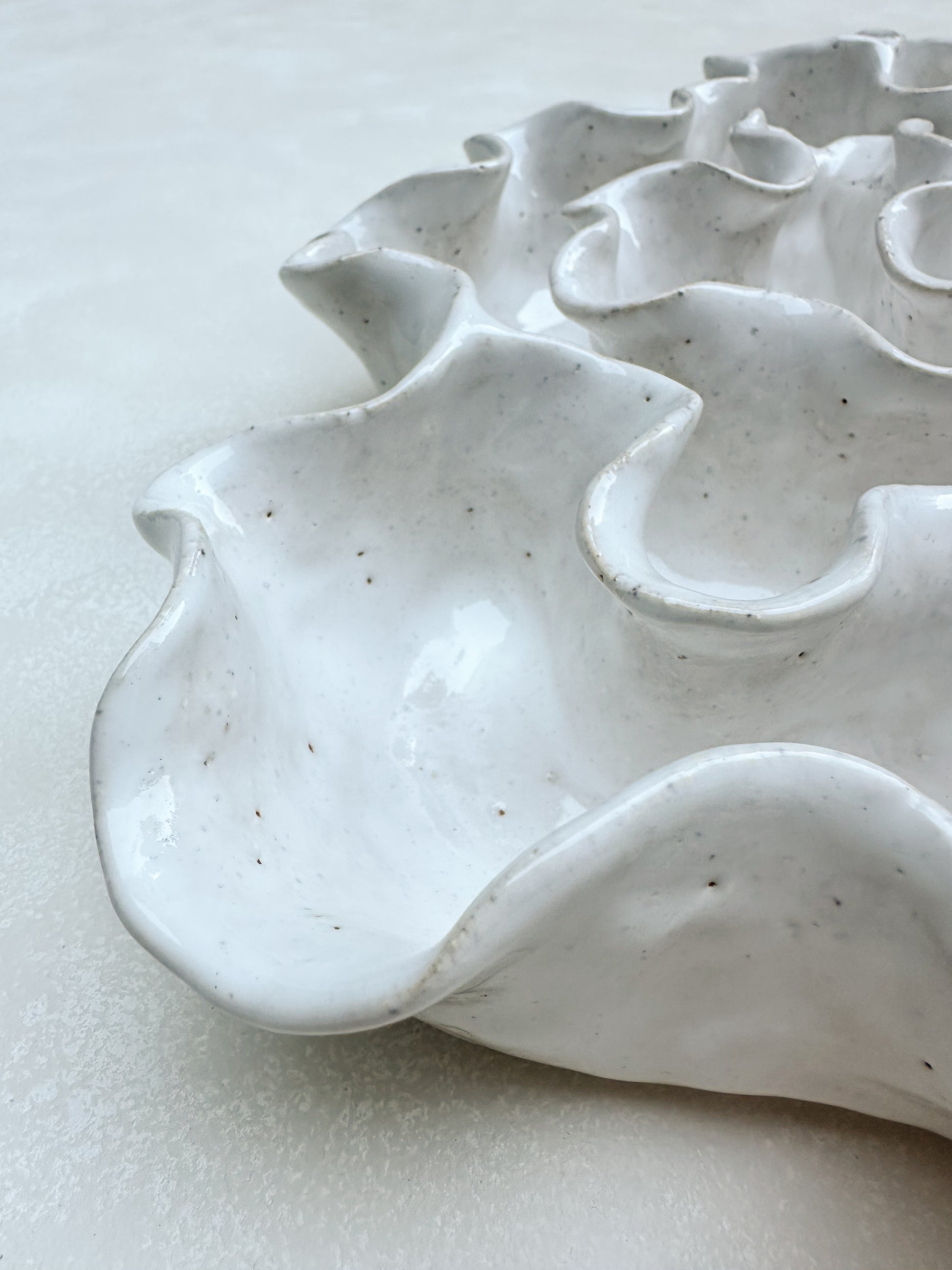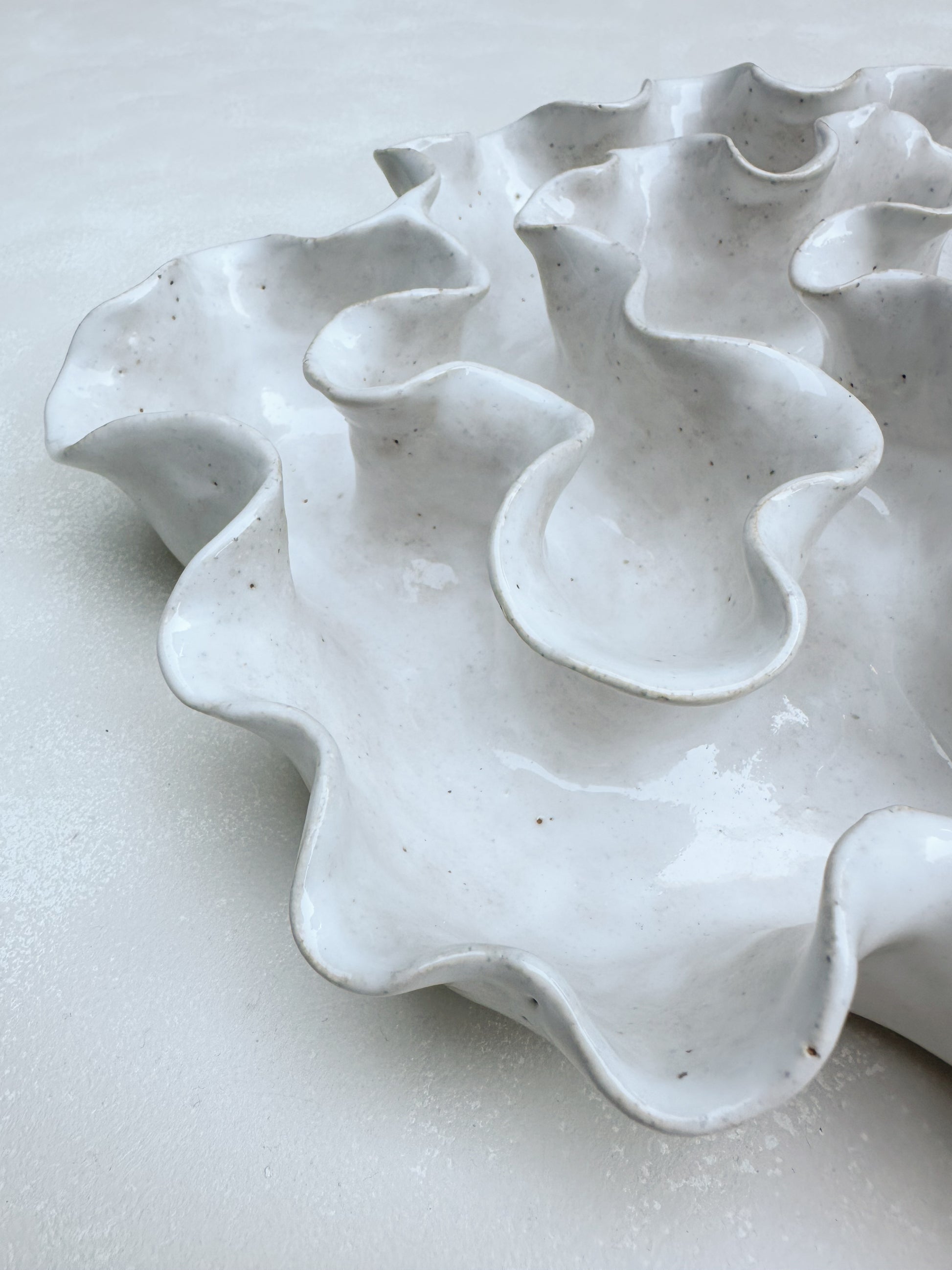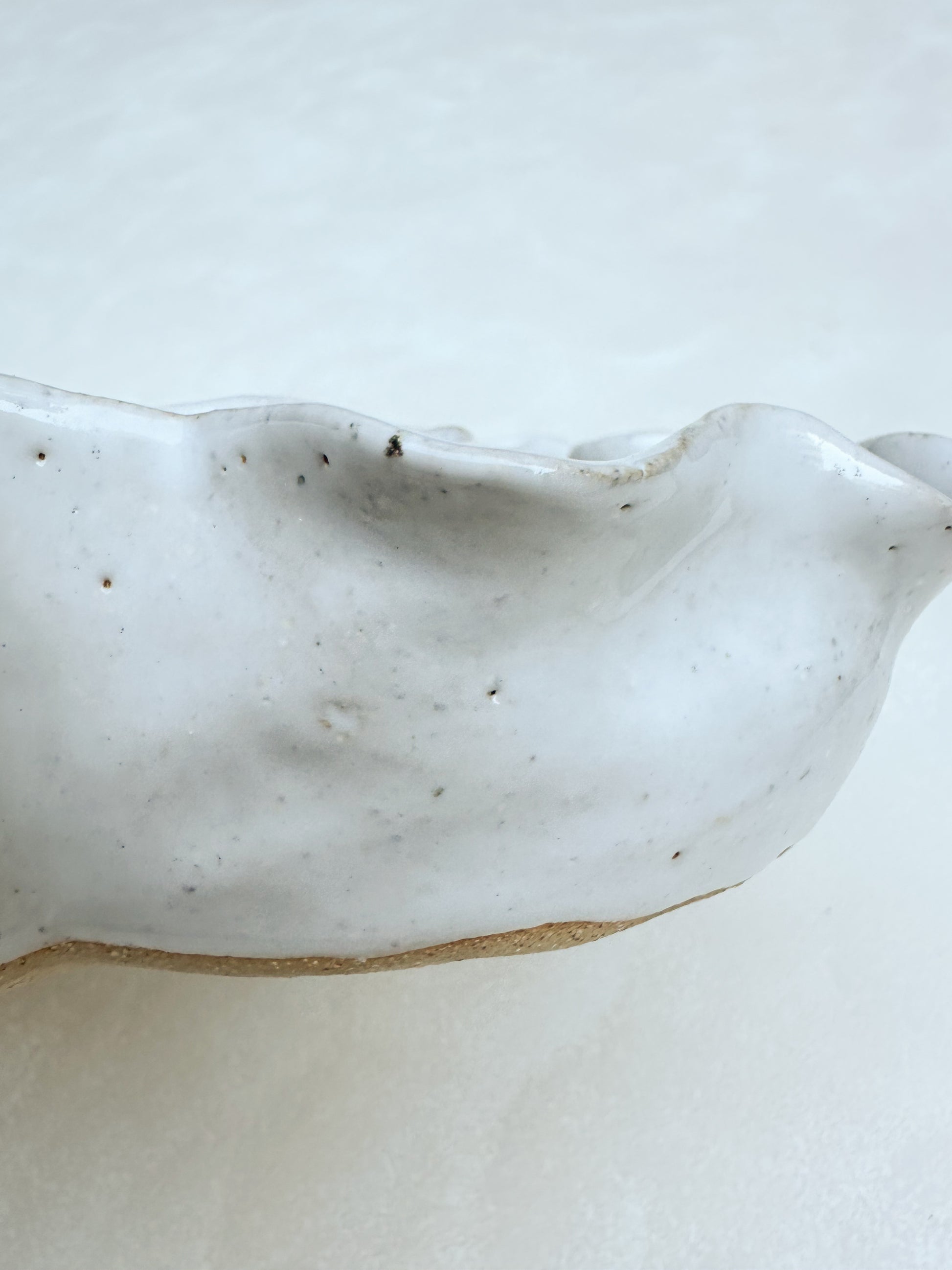 Hand crafted with a textured sandy clay body and glazed with a glossy white glaze.