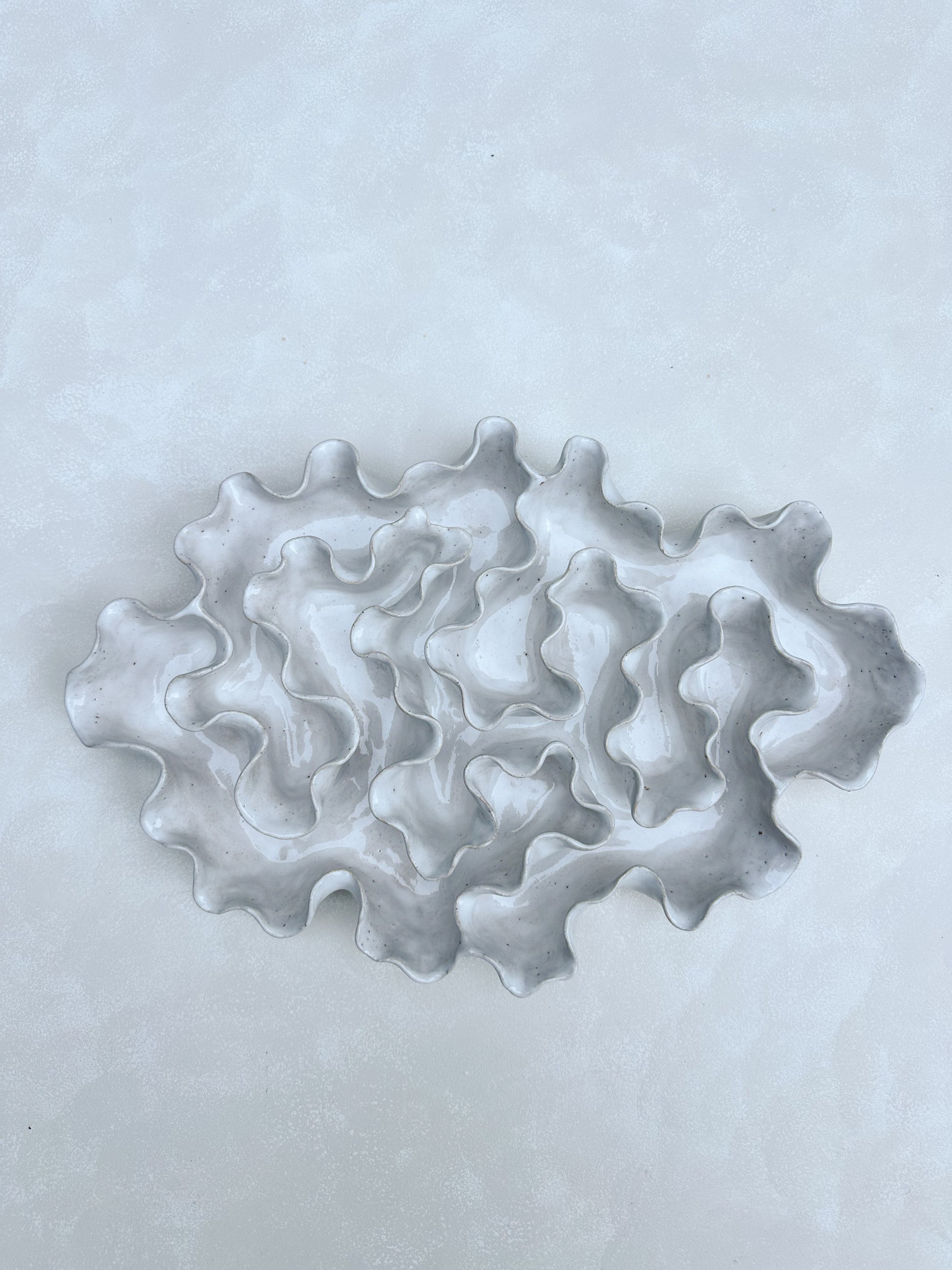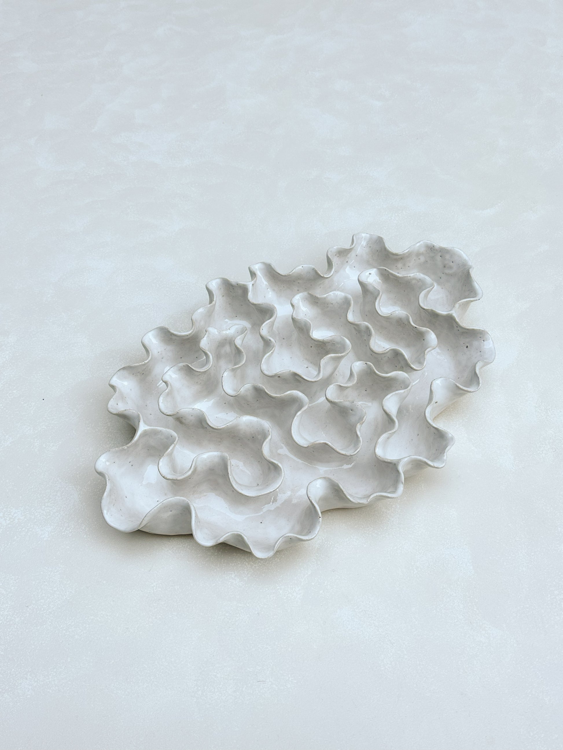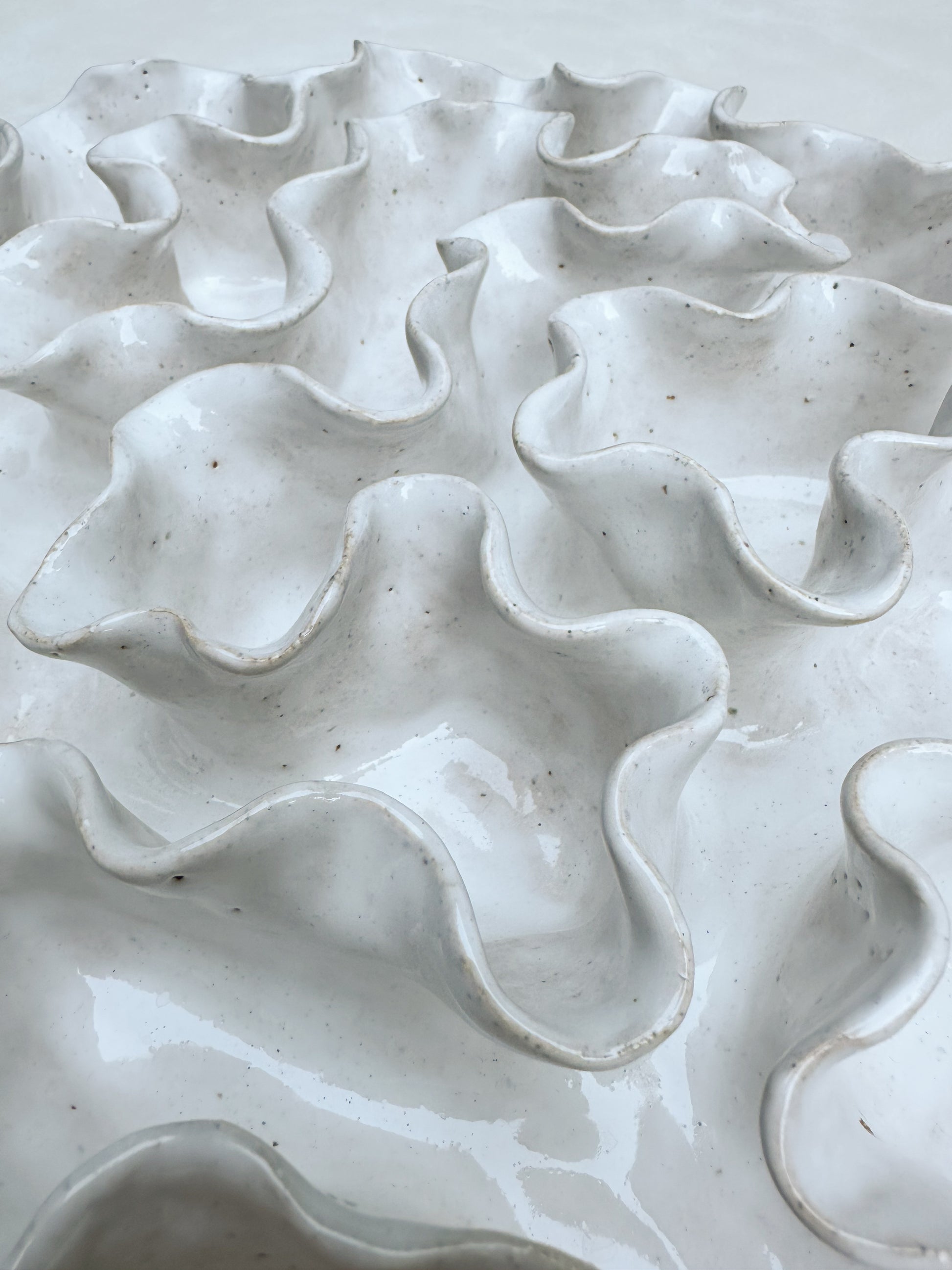 Hand crafted with a textured sandy clay body and glazed with a glossy white glaze.